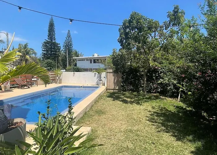 Een ingerichte keuken met een oven en een vaatwasser is inbegrepen in de strand accommodatie. Een privézwembad nodigt gasten ook uit om in te duiken.